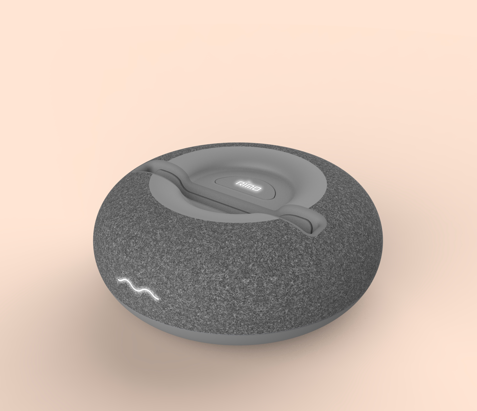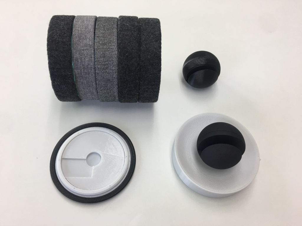 The original Rimo design utilized plastic in its entirety; however, our ID team felt that having too much of a hard plastic tech-look would not best resonate with their intended audience. To give the device a more welcoming and “homey” look and feel, we concluded that fabric would be the way to go for the base plate. Not only does it convey comfort and blend well with the living room environment, but the material would allow later iterations of the design to enable speakers and sound output.