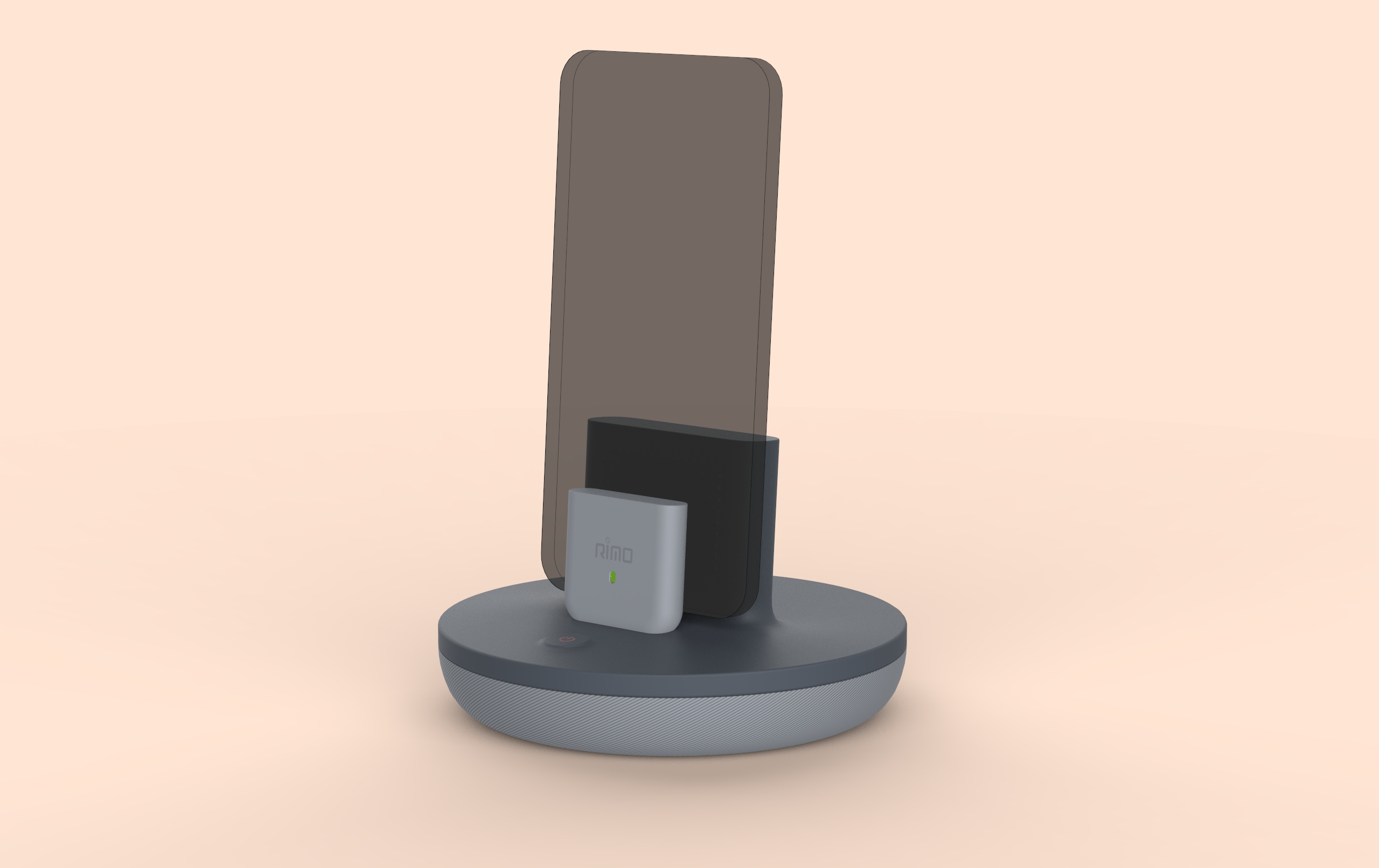 The team behind Rimo initially came to us for an engineering and design audit: they presented their prototype to the Hatch Duo team, and upon offering our feedback, it led to a consideration of rebranding from the team at Rimo. From a design standpoint, we aimed to completely redesign the device’s useability, form factor, manufacturability, and assembly design to better target and reach Rimo’s intended user groups. Because phone holders and accessories contain such a broad target audience, we identified and narrowed down the device’s primary users. When it came down to it, this device would be best used at home, simply to stay in touch with loved ones. Additionally, the redesign needed to fulfill these main aspects: a sensor housing, a base and upper housing which will contain all inner components, an ability to accommodate smartphones of varying thickness, and an on/off switch with an LED indicator.