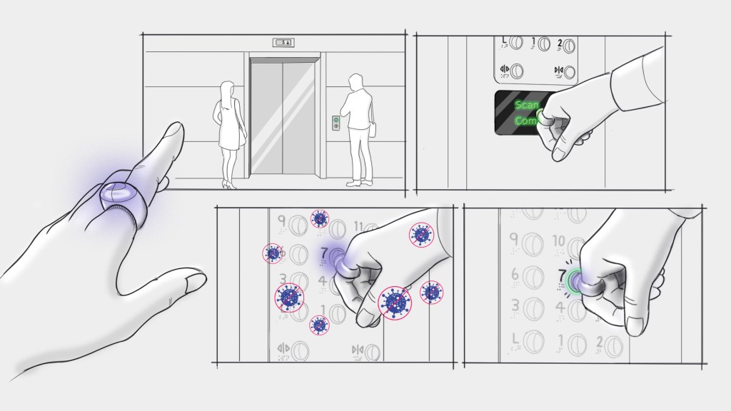 As we reach another month of shelter-in-place, it’s difficult not to imagine the world post-COVID-19. Wearing masks or gloves in public, standing six feet apart, and limiting the number of guests in restaurants have become the new norm. In our Designing For the Future: Part One blog post, we covered the idea of using VR and robotics in service stations so that small, non-essential businesses, such as barbers or other cosmetology workers can work in the comfort of their own homes. This week, we’d like to focus more on the “germaphobe” aspect of things and think of ways we can problem-solve for the one thing that gets the most touches in a given day: elevator buttons.