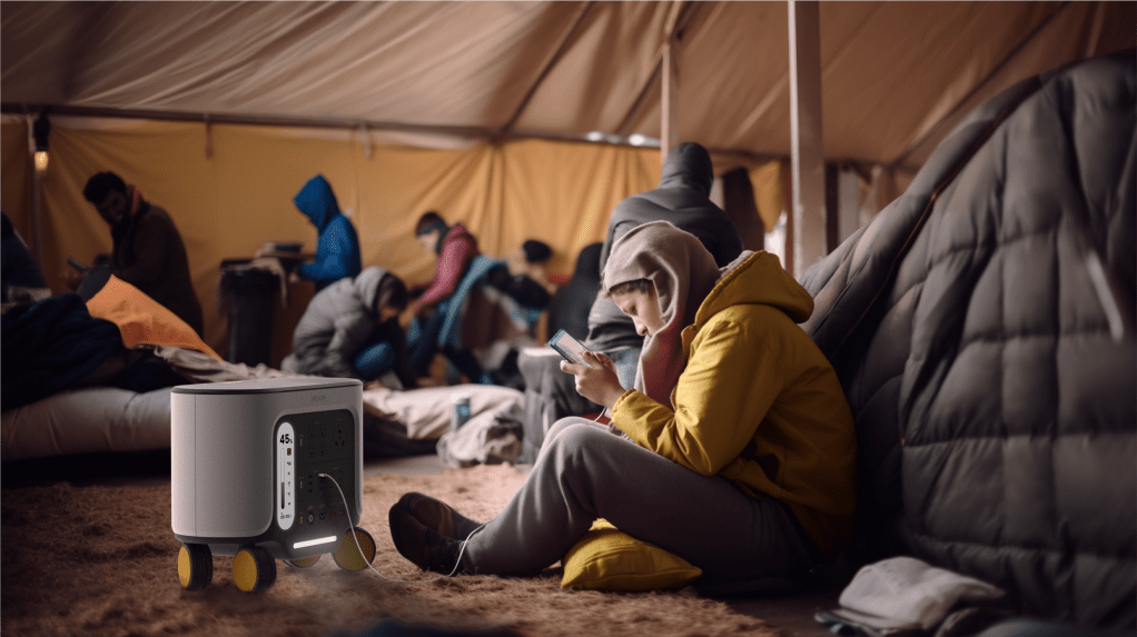 Bringing a concept to life requires compelling storytelling. With Midjourney and Photoshop AI, we created realistic environmental backdrops that showcased HELIOS in various contexts—from refugee camps to emergency situations. AI-enhanced visualization made it easier for stakeholders to grasp the full impact of the design, bridging the gap between concept and real-world application.