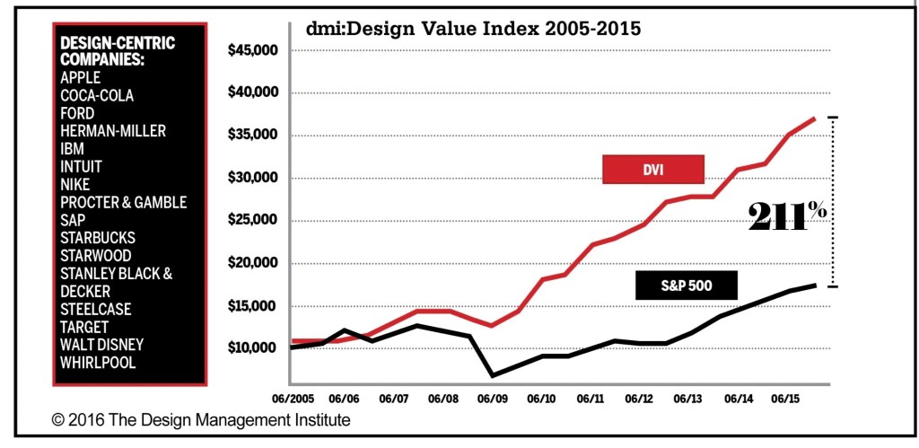 First and foremost, design helps elevate the value of a business. In a 2015 study conducted by The Design Management Institute, the data provided over a ten-year period emphasized how some of the world’s top companies expanded their reach by 211 percent by becoming more “design-centric.” Design-thinking is strategic and understands how to incorporate what has already been built and accepted while considering future innovation. It is about observing and gaining insight into what people need and focusing on solutions for the consumer/customer. Businesses centered around design will have an easier time innovating, and as a result, provide more growth and profitability to their companies.