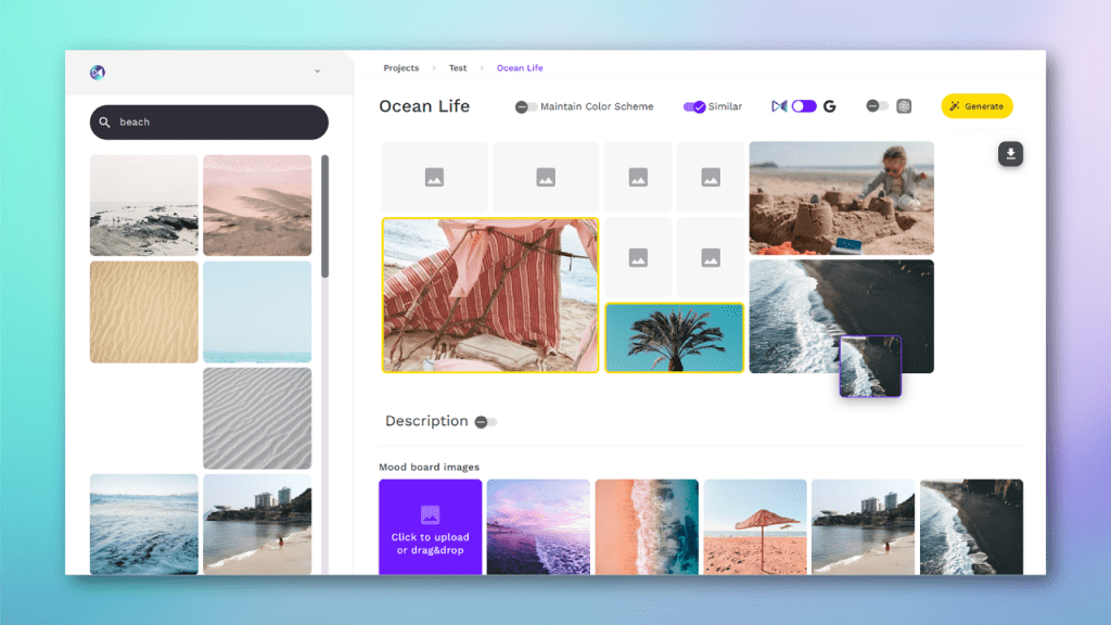 The creation of Mooed.ai, which later metamorphosed into FLO.ai, was borne out of a necessity to address this challenge head-on. By integrating advanced AI technologies such as text-to-image generation and pixel recognition, we set out to automate the mood board creation process. This initiative was driven by a clear objective: to alleviate the time-consuming tasks of searching, sorting, and synthesizing visual content, thereby enabling designers to reallocate their focus towards more creative and innovative endeavors. This approach promised not only to streamline a critical phase in the design process but also to foster an environment where creativity could flourish unencumbered.